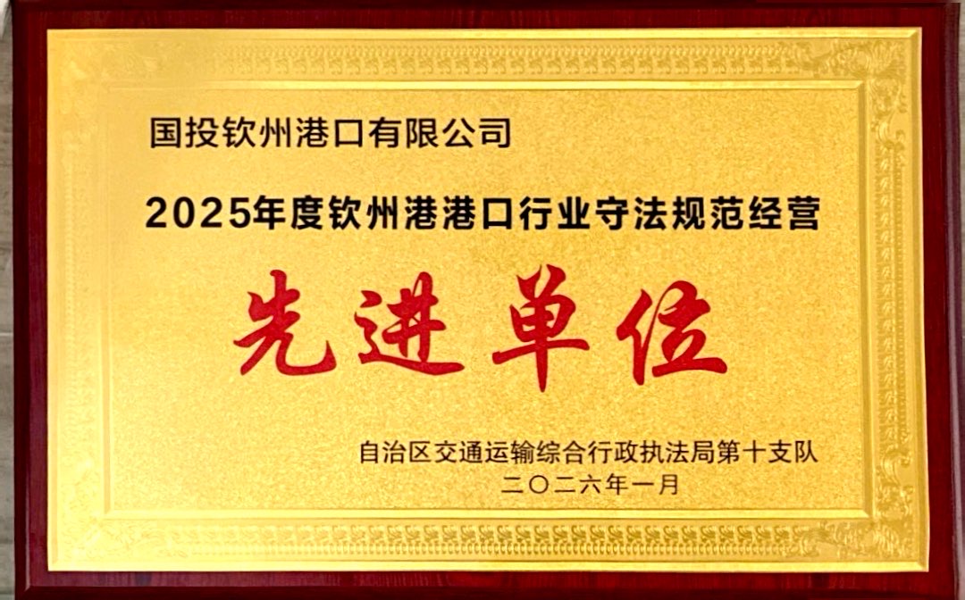 2026年1月,公司荣获钦州港港口行业守法规范经营先进单位