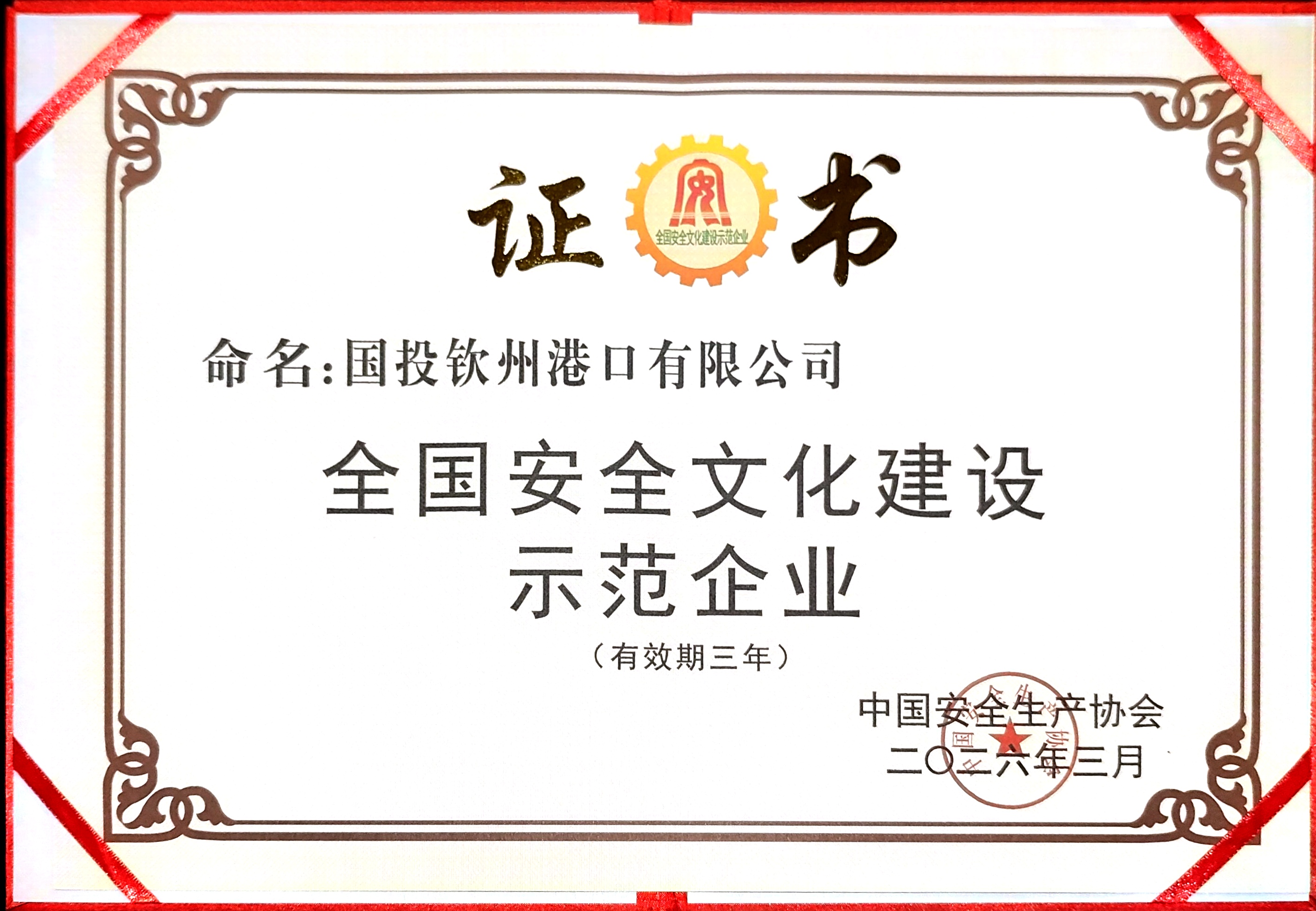 2026年3月,公司荣获全国安全文化建设示范企业