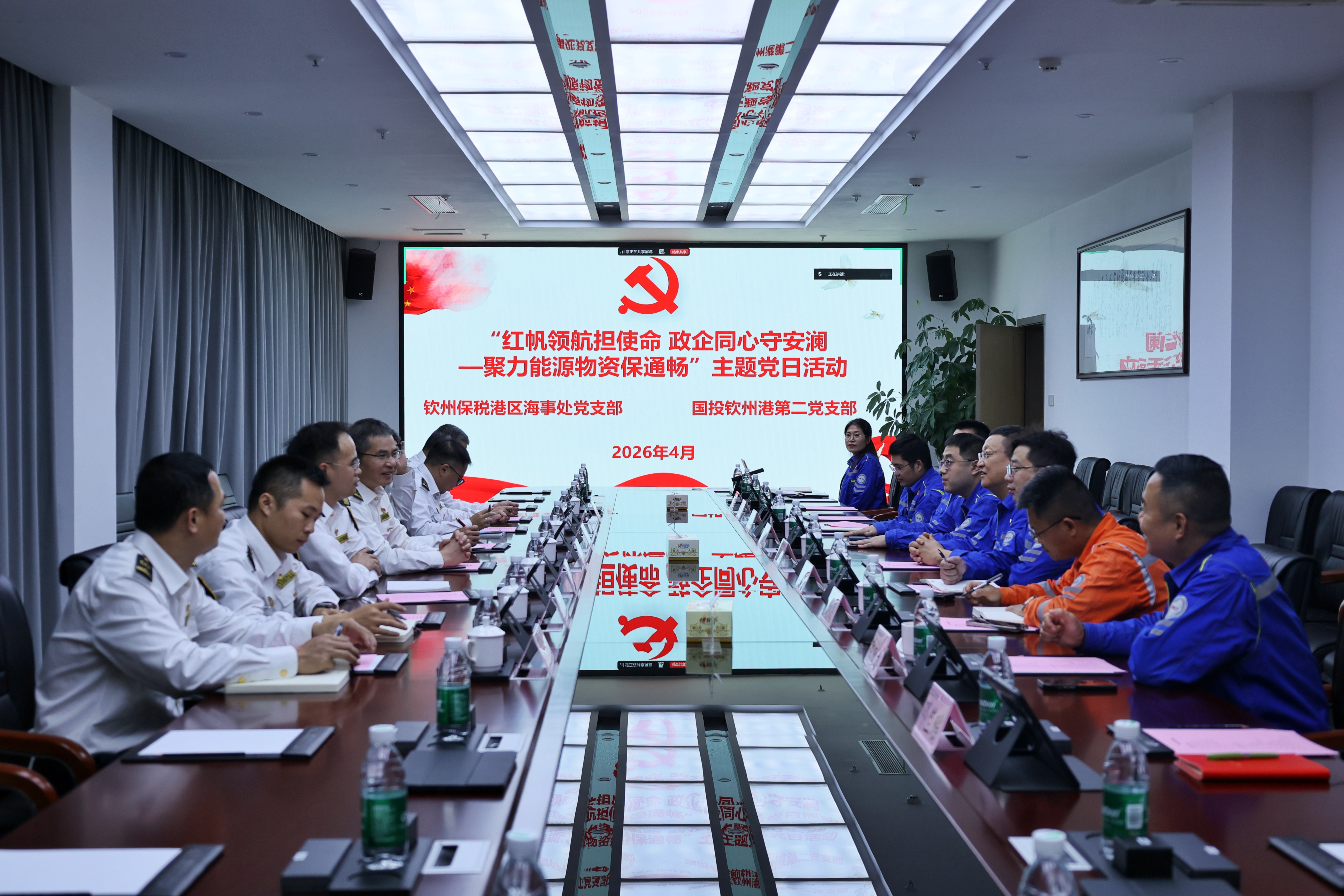 为深化链上政企党组织联建共建,以党建链赋能产业链、激活创新链,4月2日,国投钦州港与钦州保税港区海事处联合开展“红帆领航担使命 政企同心守安澜——聚力能源物资保通畅”主题党日活动。公司党委书记、总经理常高,钦州保税港区海事处党支部书记、处长欧建华及双方党员代表参加此次活动,为地区能源保供与通航安全保驾护航。